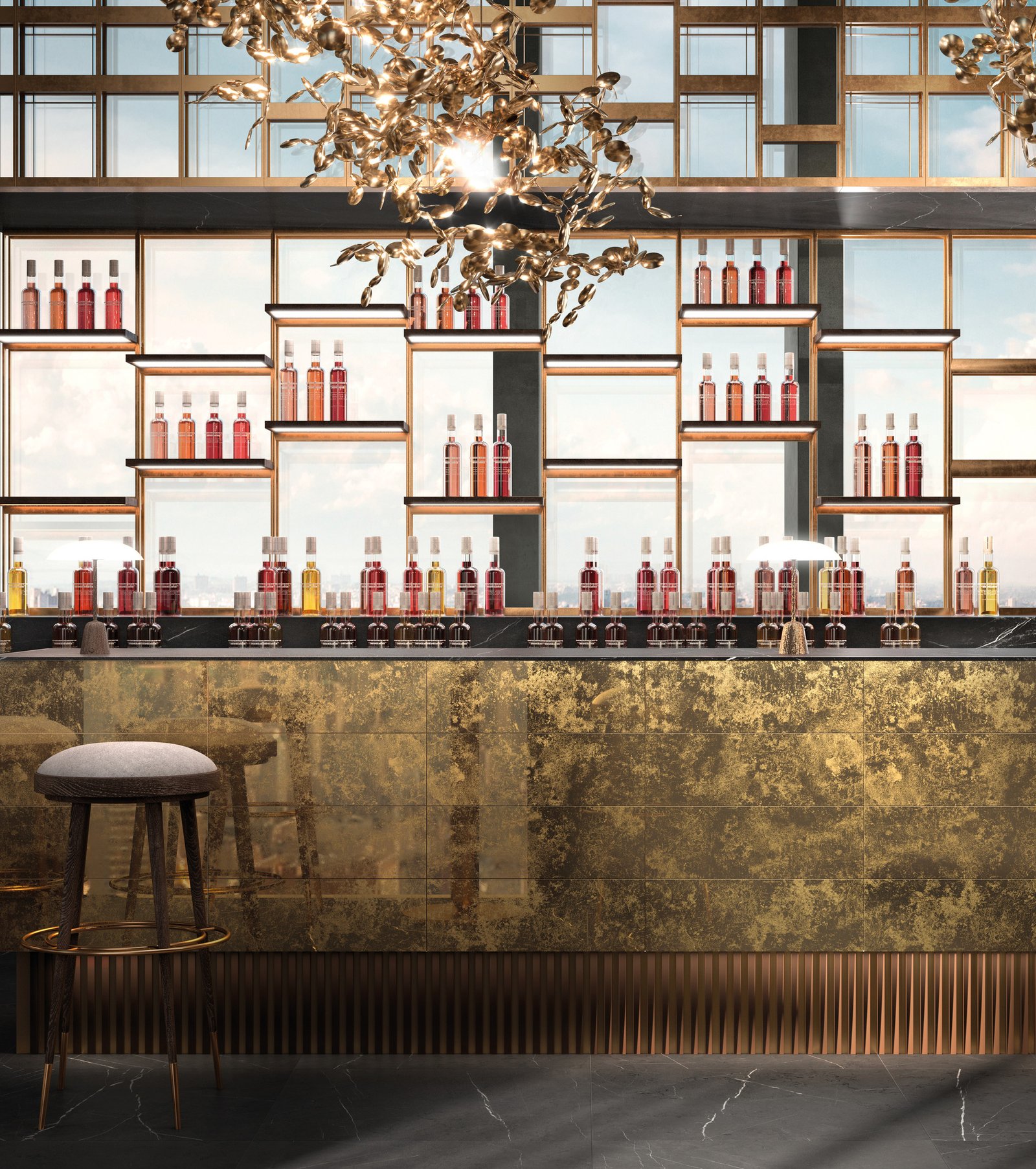 Die Kollektion ist im Format 200x600 und in den Ausführungen Antique mit antikisiertem Spiegeleffekt und Sketch mit matter Wirkung und leuchtenden Akzenten erhältlich.